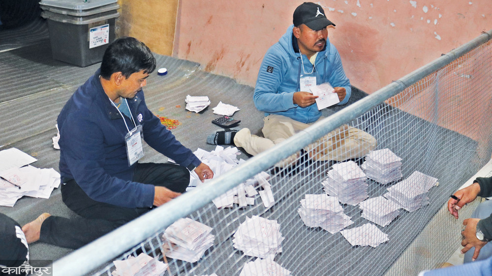 सल्यानमा मत गणना गर्दै कर्मचारी । तस्बिर : कान्तिपुर